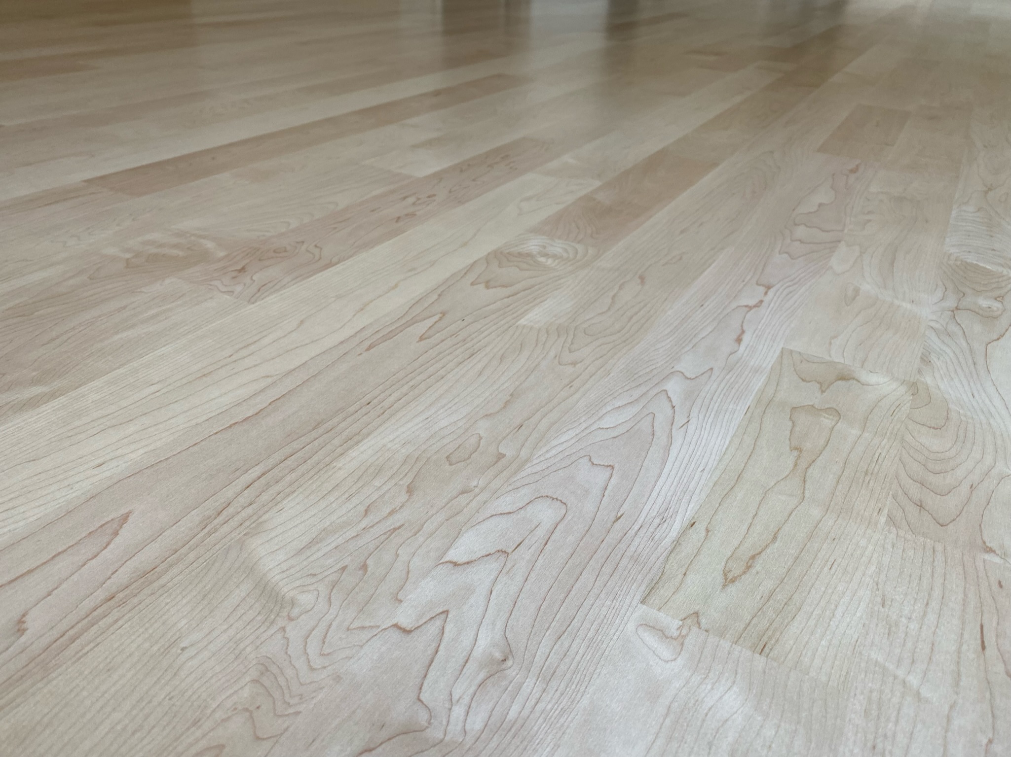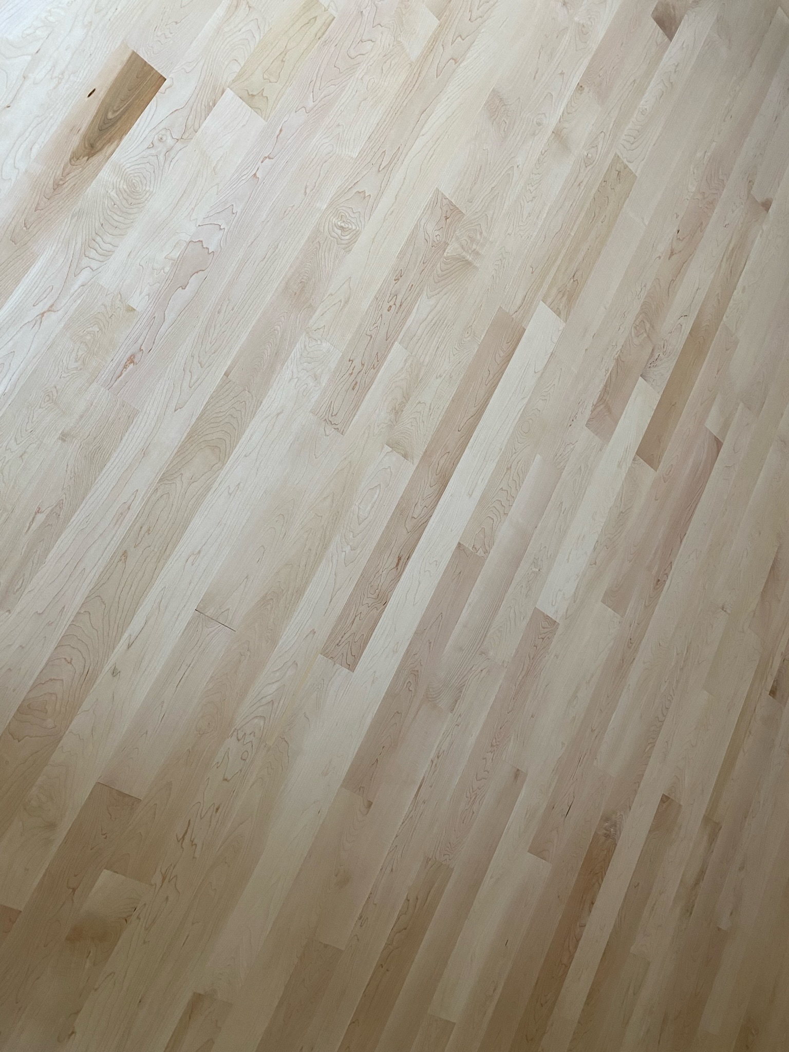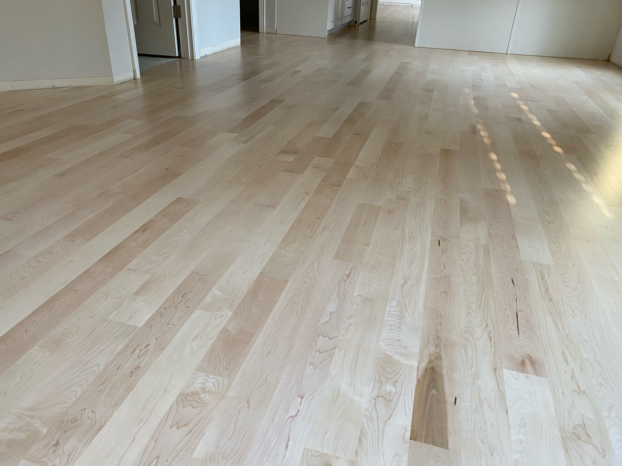 A clean, natural refresh using clear water-based coats to restore the original beauty of maple hardwood floors — without changing the color.