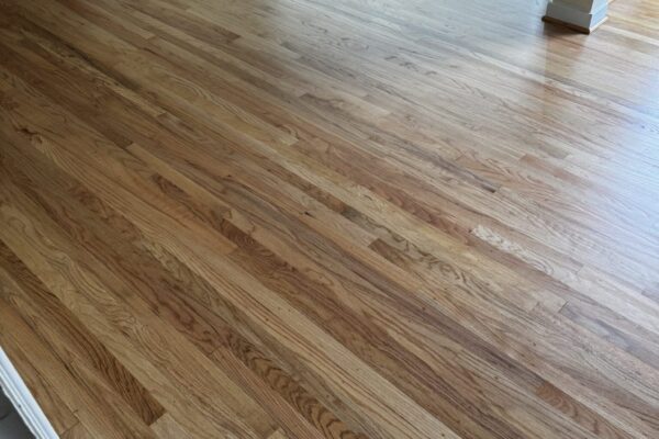 Once the surface was prepped and smoothed, we applied three coats of high-performance Swedish finish. This premium oil-based formula enhances the natural character of red oak while delivering long-lasting durability and a rich, amber-toned glow.