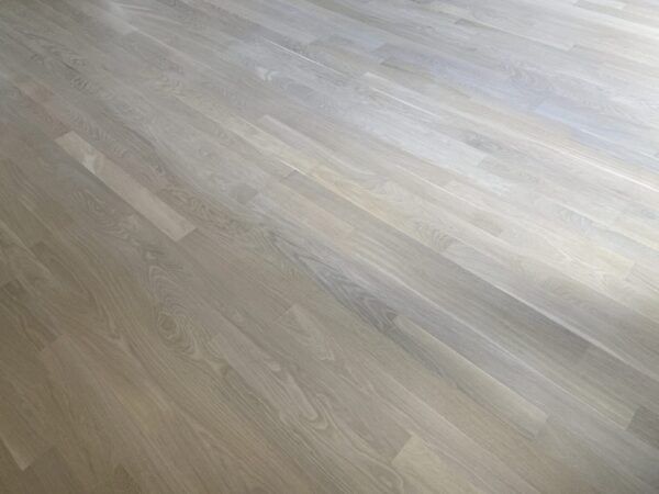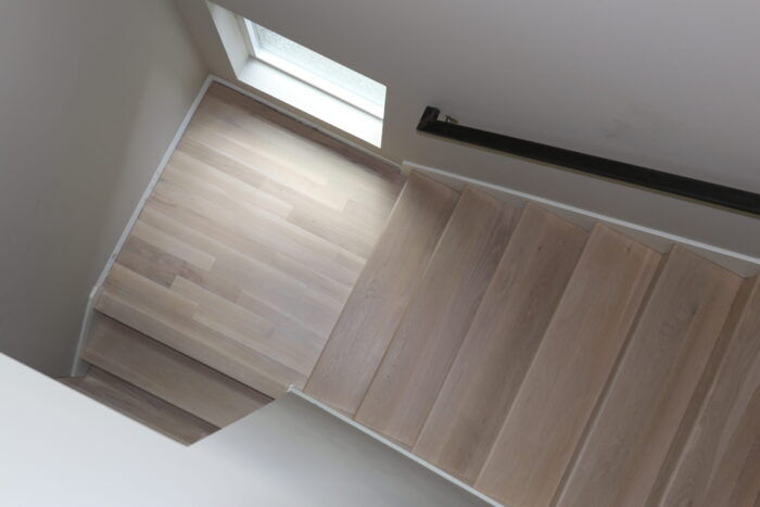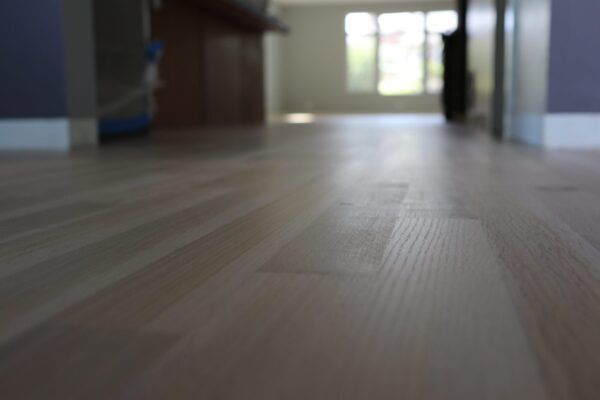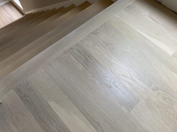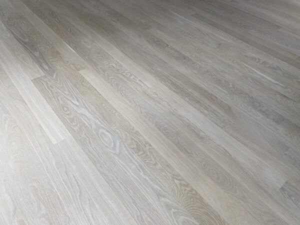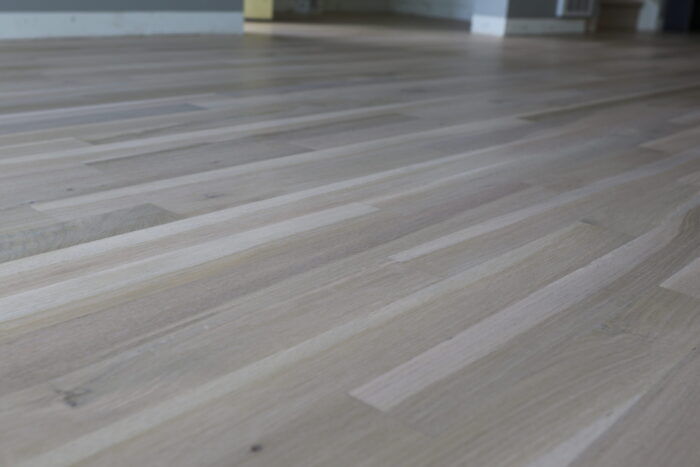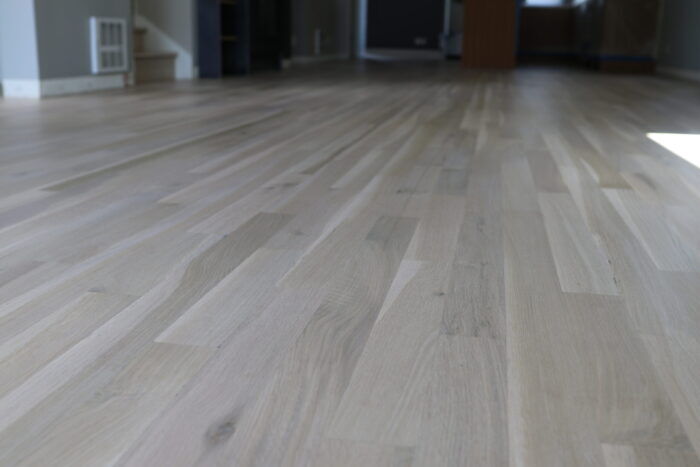 In this stunning new 2,500 sq ft home, we installed 3.25″ solid white oak hardwood flooring throughout — adding warmth, elegance, and timeless beauty to every room. The hardwood was custom-stained with DuraSeal Country White, one of the most popular modern stain choices for a soft, whitewashed effect that highlights the natural wood grain.