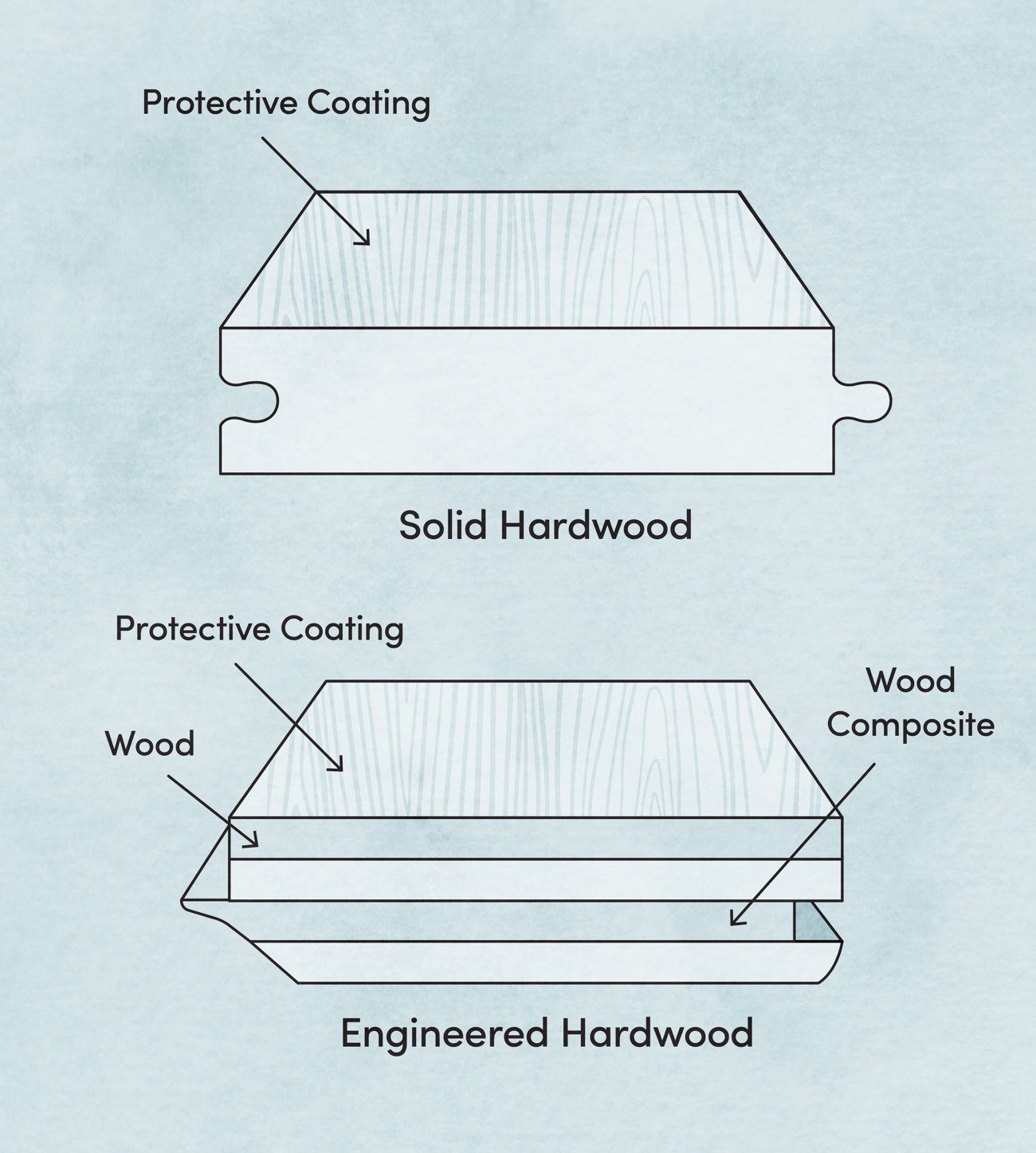 Engineered hardwood floors has wooden components, being only partially composed of genuine hardwood floors, and is finished with the same types of protective coating that would be used for solid hardwood floors. This makes it a look-alike to hardwoodâit is difficult to visually tell the difference between the twoâbut a cheaper alternative due to its lower longevity.